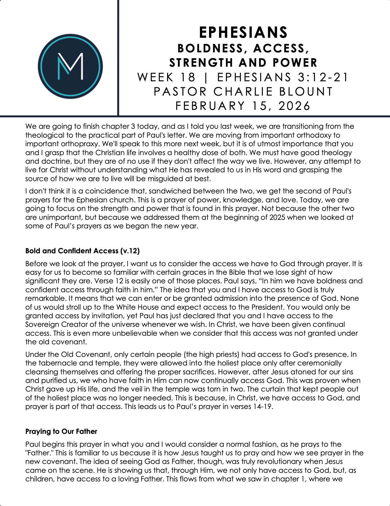 Want to engage with one of our sermons at First Moore? Find sermon notes, audio, and video here.